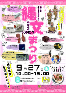 Facebookで記事を共有 Twitterで記事を共有 Lineで記事を共有 千歳市埋蔵文化財センター「縄文まつり」開催! 北海道 毎年恒例「縄文まつり」が【9月27日(土)】10:00~15:00に開催! 入退場自由で、体験ブースは全て【無料】です! 手軽に楽しめるマグネットやクッキー、本格派な石器・貝輪づくりなど、盛り沢山の内容で皆さんをお待ちしております! 一部【事前予約】が必要なブースがあります!詳細はコチラから!! 期間 2025月09月27日 ~ 2025月09月27日 会場 千歳市埋蔵文化財センター 住所 北海道千歳市長都42-1 主催/共催 千歳市埋蔵文化財センター (お問合せ先) 千歳市埋蔵文化財センター 0123-24-4210(平日9:00~17:00)