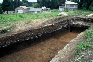遺跡からは竪穴建物跡や貯蔵穴が多数見つかっており、大規模な集落であったことがわかります。貝塚は、台地の北斜面と南斜面に形成され、下層には海水性、上層には汽水性の貝殻が堆積し、海進・海退による環境の変化を明確に反映しています。