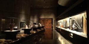 また、紀元前2,000年頃に構築された長さ190メートルに及ぶ「コ」(U)の字形をした大規模な盛土遺構は、国内最大級の規模です。「送り場」など祭祀・儀礼の場と考えられ、当時の社会性や精神性の変遷を示す遺構として、今なお視覚的に確認できる重要な記念物です。