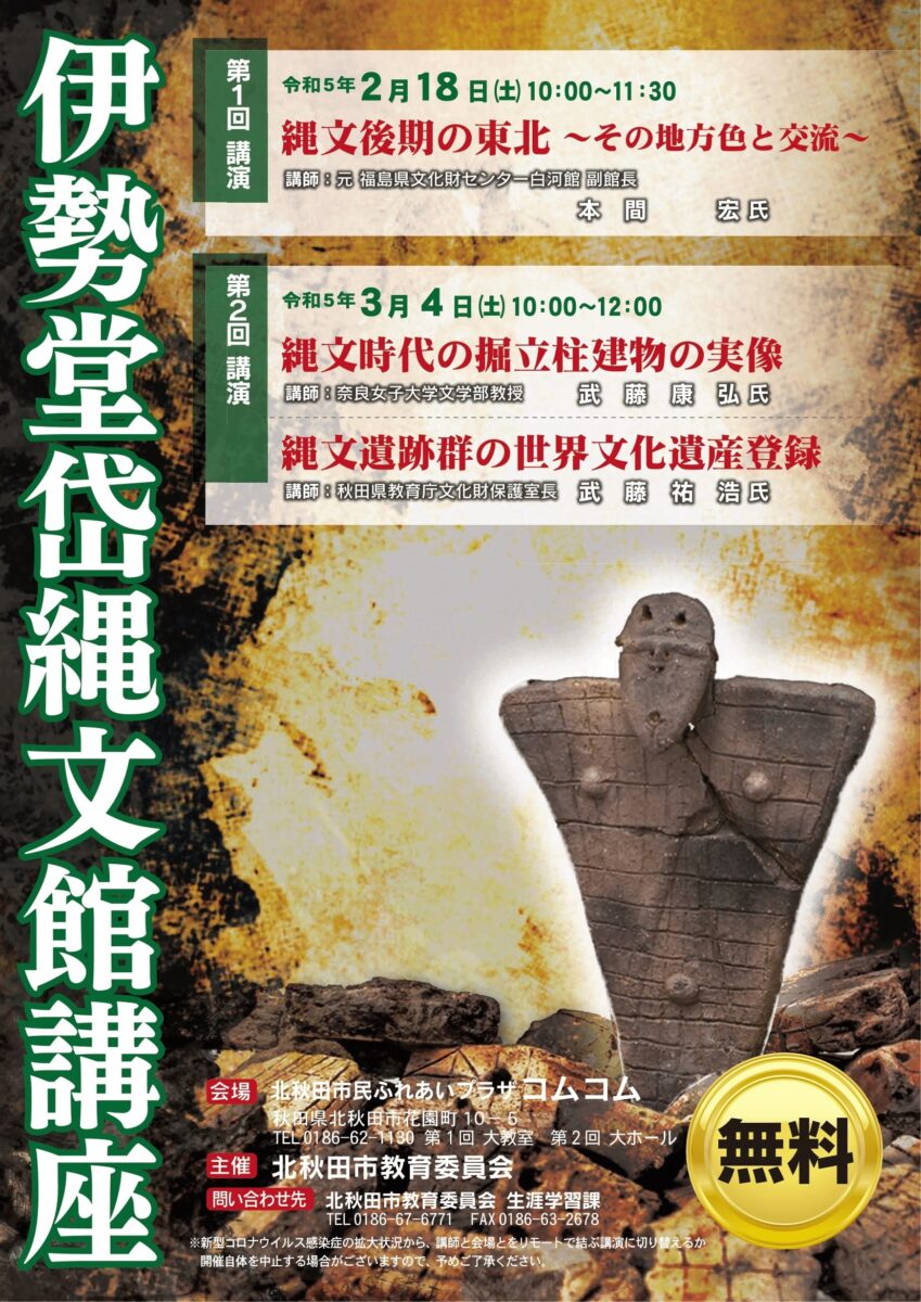 詳しくは伊勢堂岱縄文館講座チラシまたは伊勢堂岱遺跡ホームページをご覧ください。