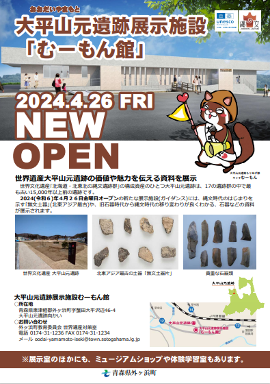 令和6年4月26日(金)に、大平山元遺跡展示施設「むーもん館」がオープンします。