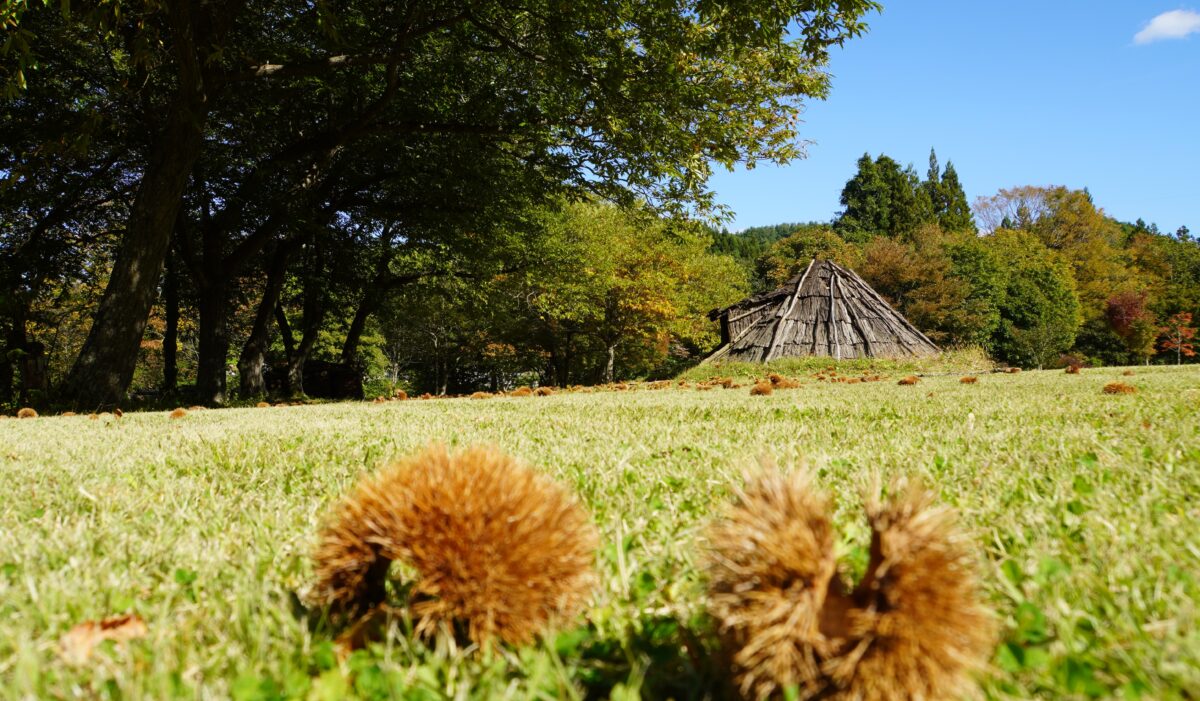 遺跡と栗と岩木山と私