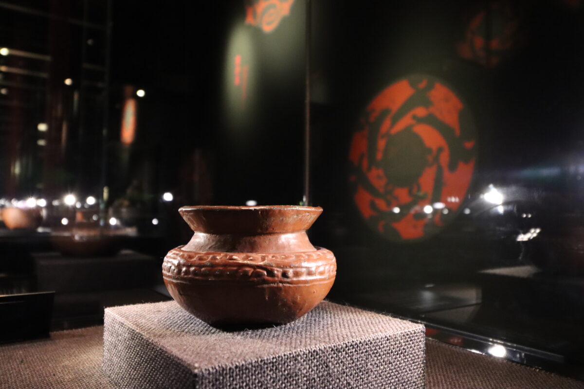 是川石器時代遺跡の出土品の特徴の一つが、鮮やかな漆塗りの遺物が多いことです。