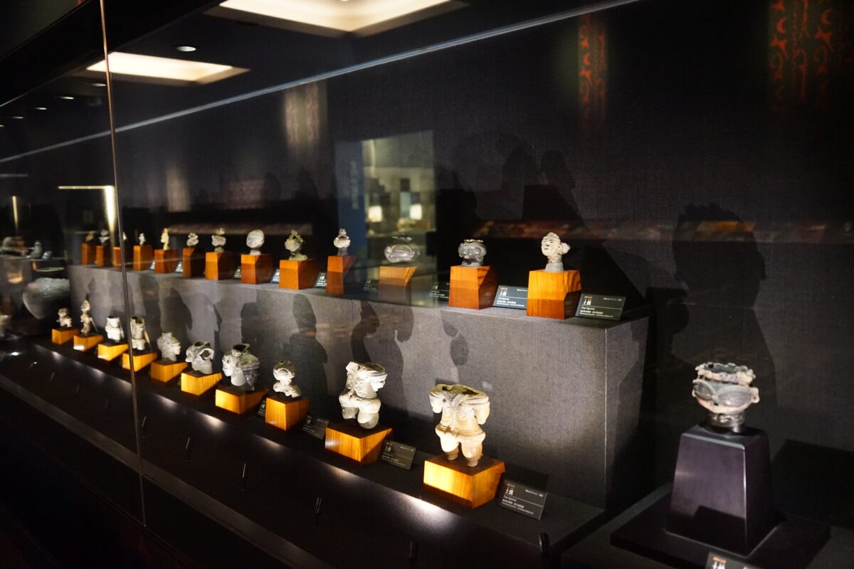 暗い部屋に煌々とスポットが当たる土偶たちがとても印象的です。