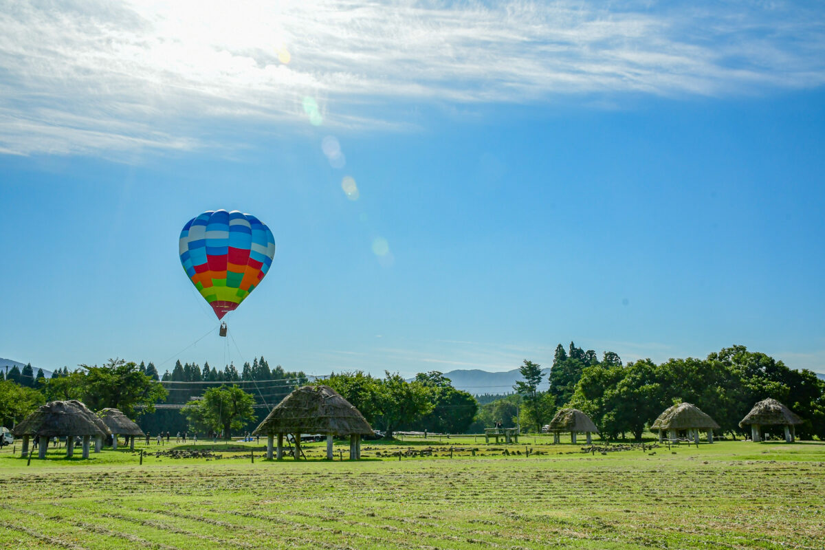 ストーンサークルを気球から眺めるイベントで撮影。