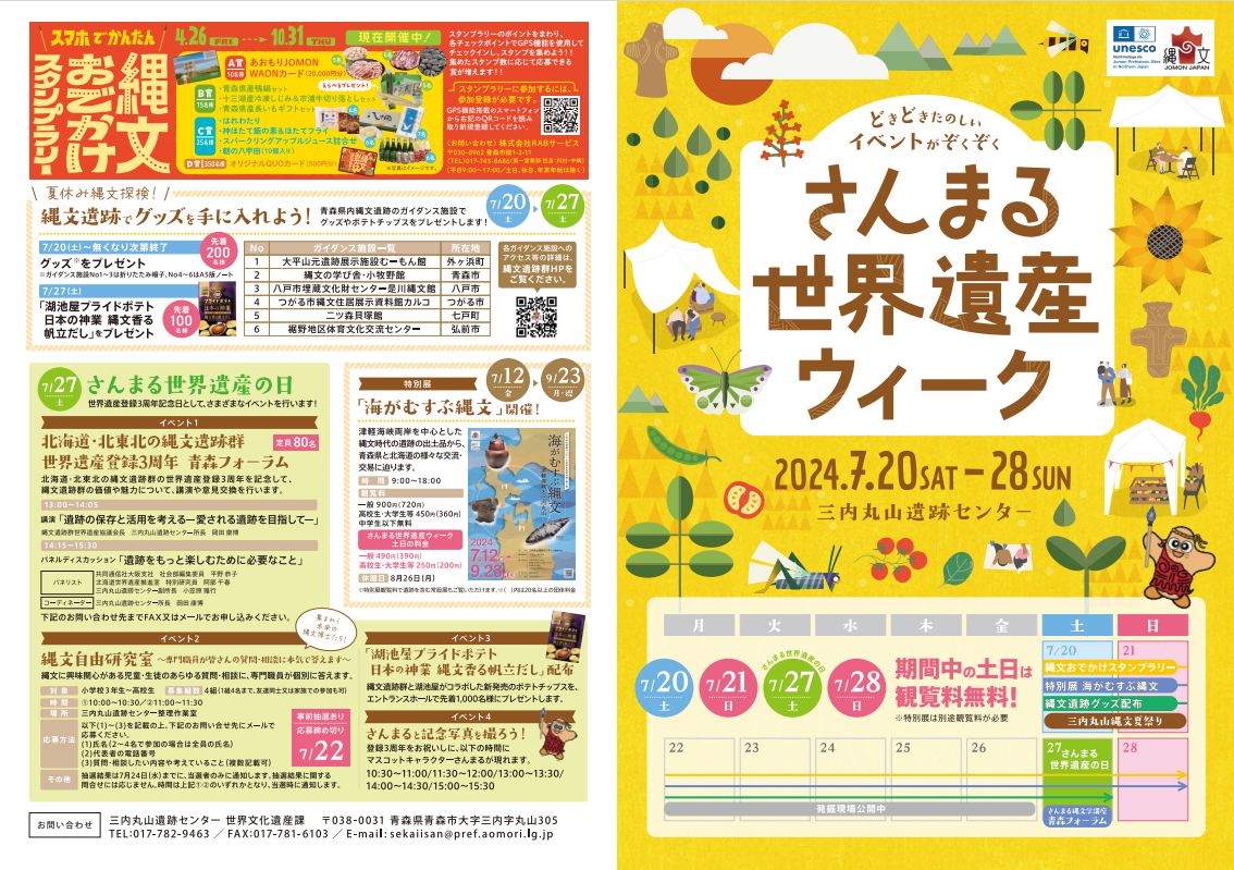 北海道・北東北の縄文遺跡群の世界遺産登録3周年を記念した様々なイベントを三内丸山遺跡で実施します!!