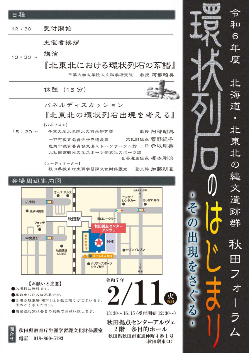 秋田フォーラム『環状列石のはじまりーその出現をさぐるー』開催!(令和7年2月11日(火・祝日))