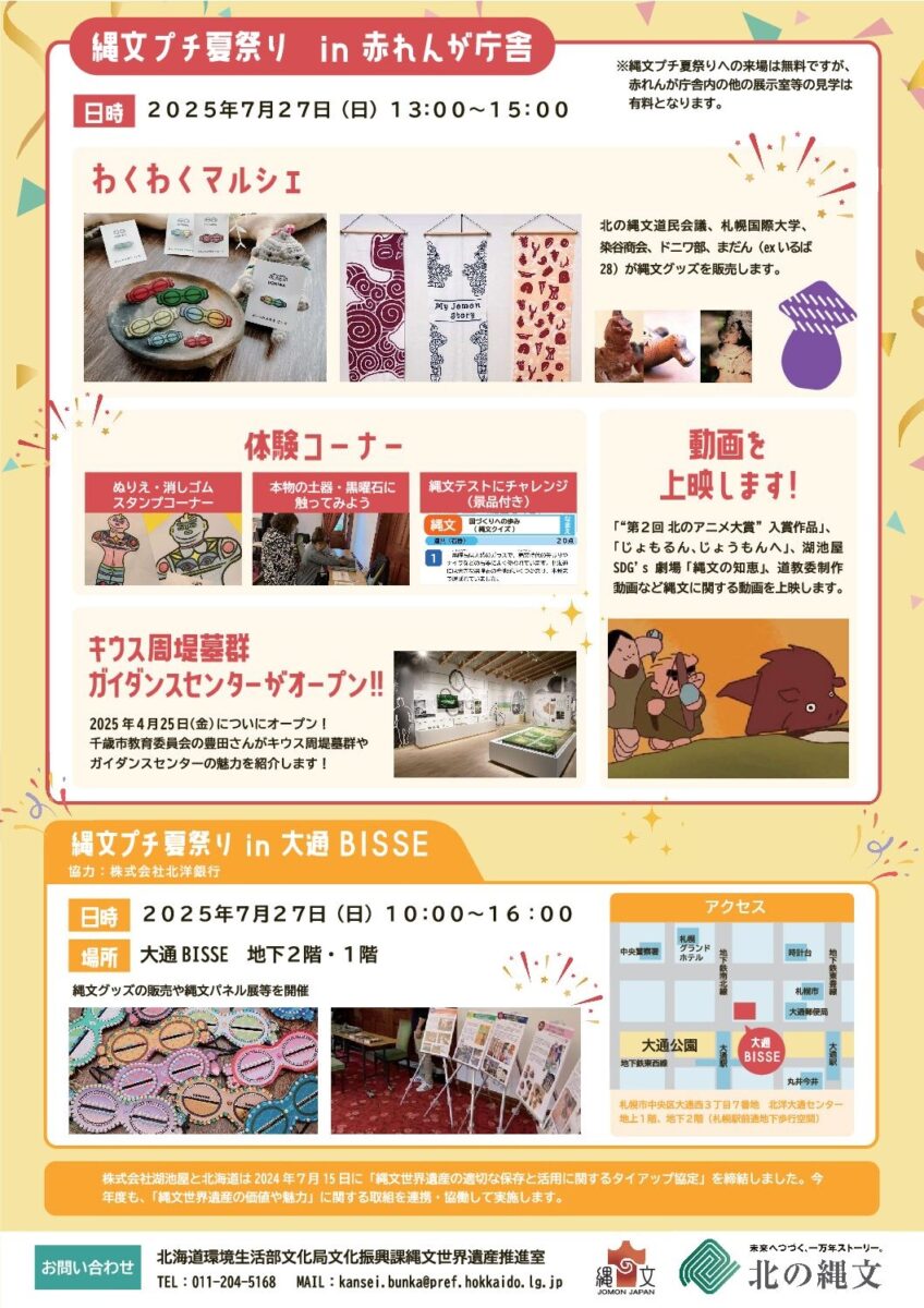縄文世界遺産登録4周年の7月27日(日)に赤れんが庁舎(北海道庁旧本庁舎)と大通BISSEの2会場でイベントを開催します。