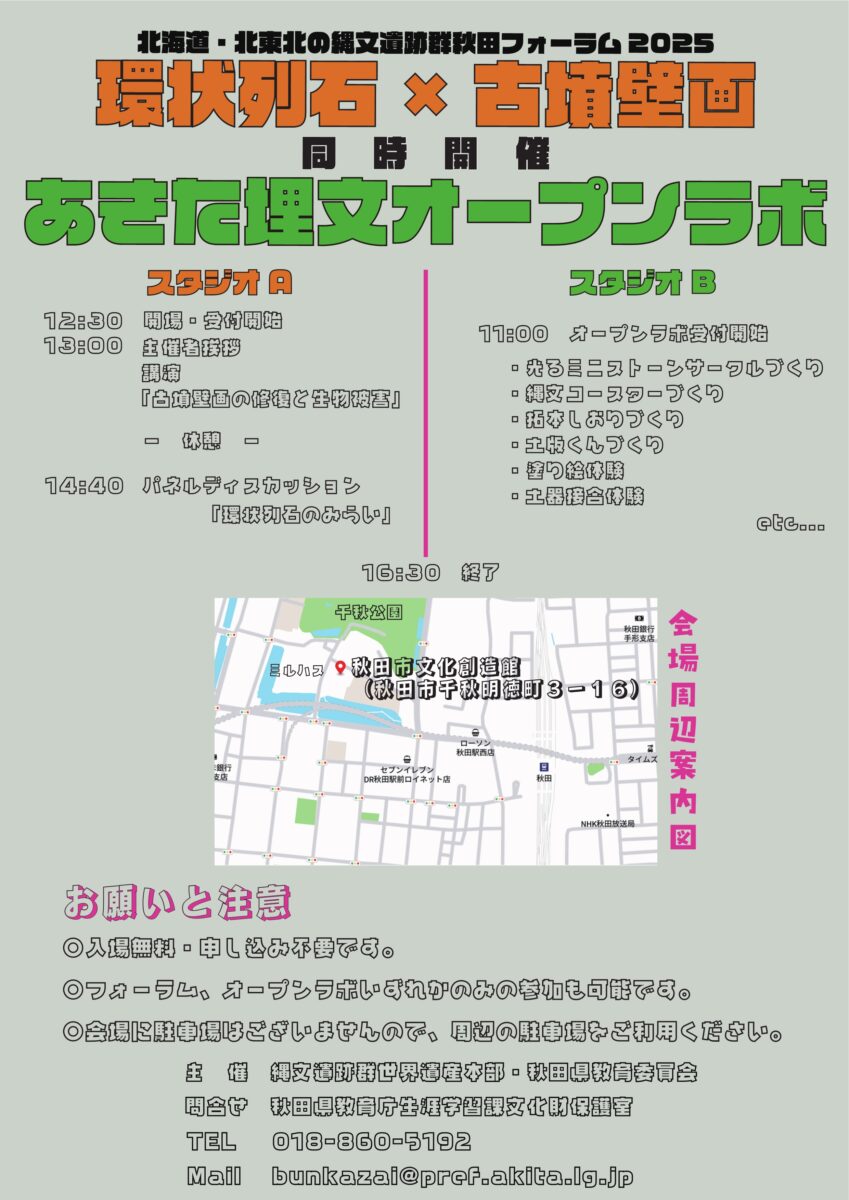 秋田フォーラム『環状列石×古墳壁画』開催!(あきた埋文オープンラボ同時開催!)令和7年11月30日(日)