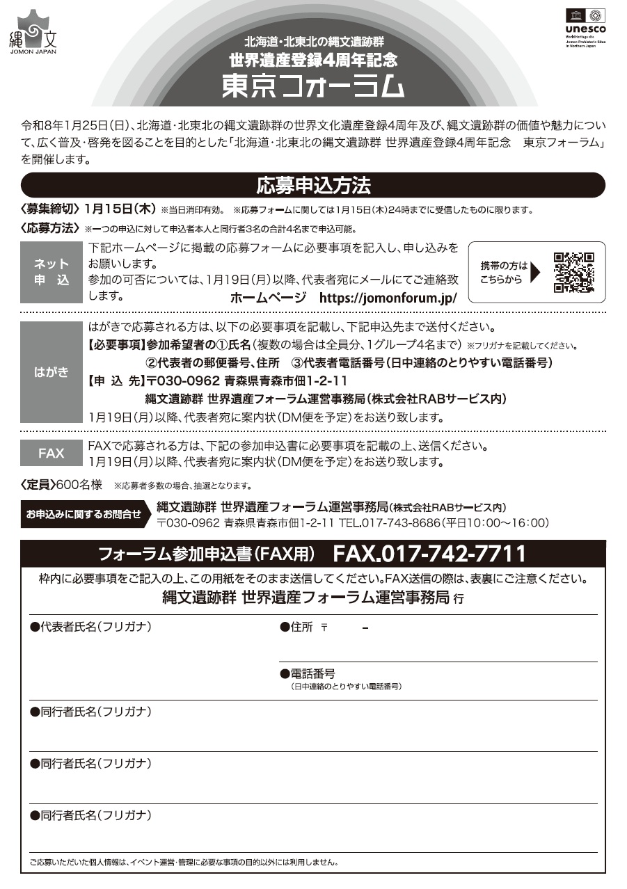 縄文遺跡群世界遺産フォーラム運営事務局(株式会社RABサービス内)行き