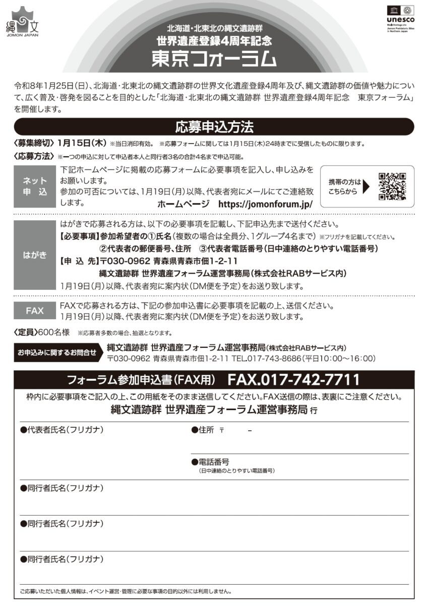 世界遺産登録4周年!!「北海道・北東北の縄文遺跡群」東京フォーラムを開催します!!