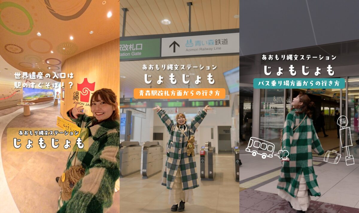 じょもじょもの見どころや楽しみ方、青森県内の縄文遺跡などについて、縄文大好きタレントの平沼日菜子さんが紹介しています。青森駅の改札やバス停からのじょもじょもへのアクセスについても紹介しているので、この機会にぜひお越しください♪