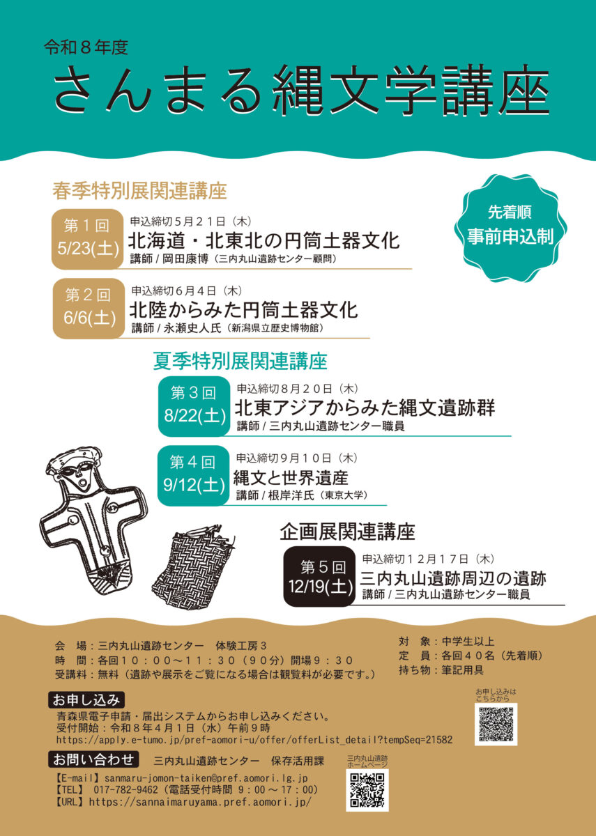 「青森県電子申請・届出システム」さんまる縄文学講座参加受付フォームからお申し込みください。